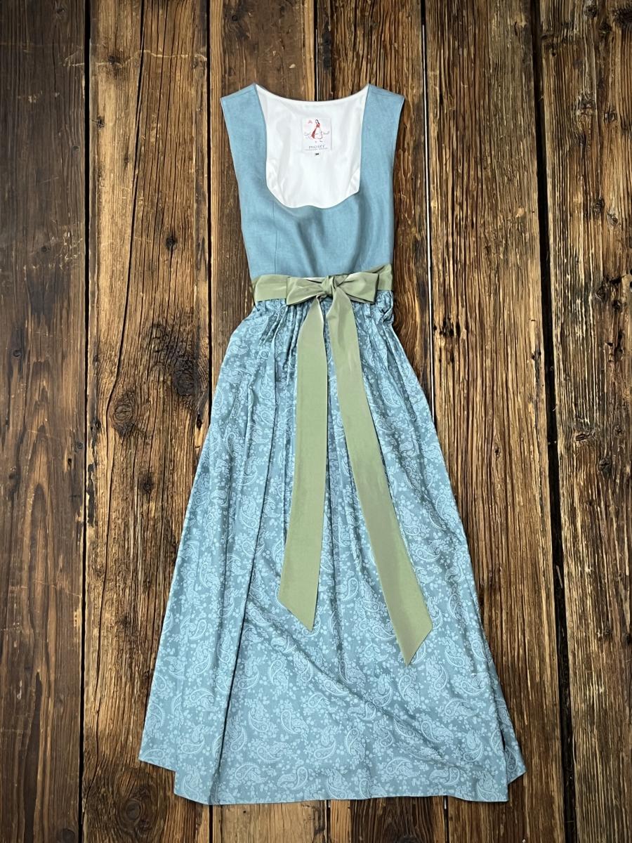 Schlichtes Damendirndl mit Leinen Oberteil in der Farbe eisblau