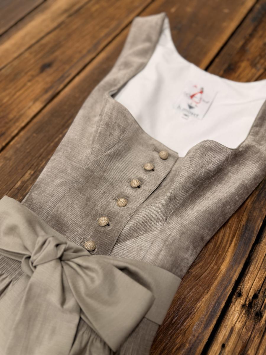Dirndl in beige mit Miederausschnitt und Kordoberteil