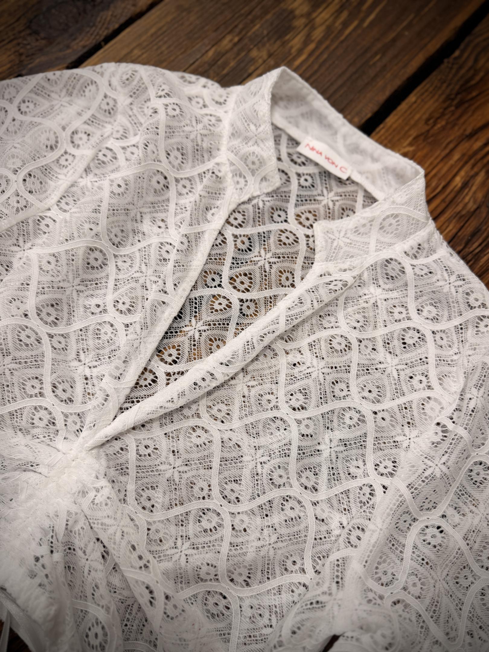 Weiße Dirndlbluse mit 3/4 Ärmel und V-Ausschnitt