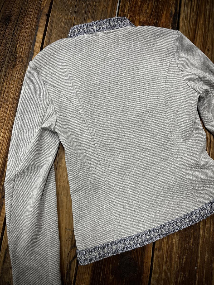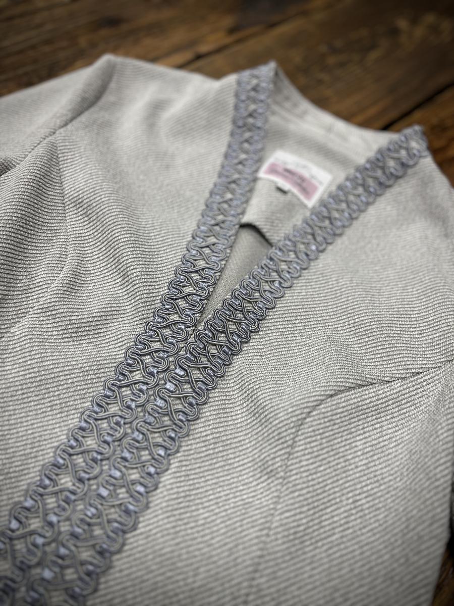Diese klassische Damenjacke in grau ist für einen festilichen Anlass hervorragend geeignet.