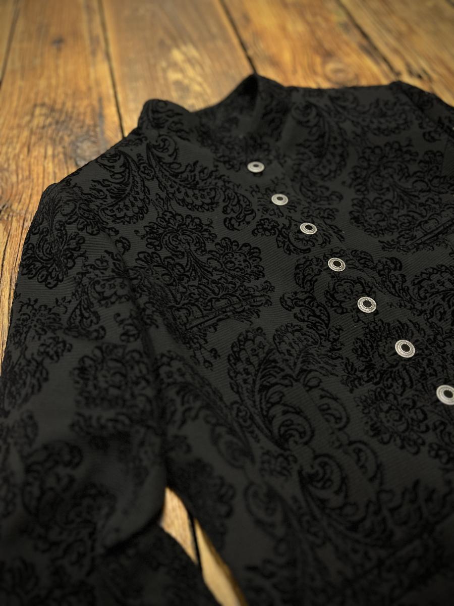 Damenjacke in schwarz mit elegantem Muster und Knopfreihe
