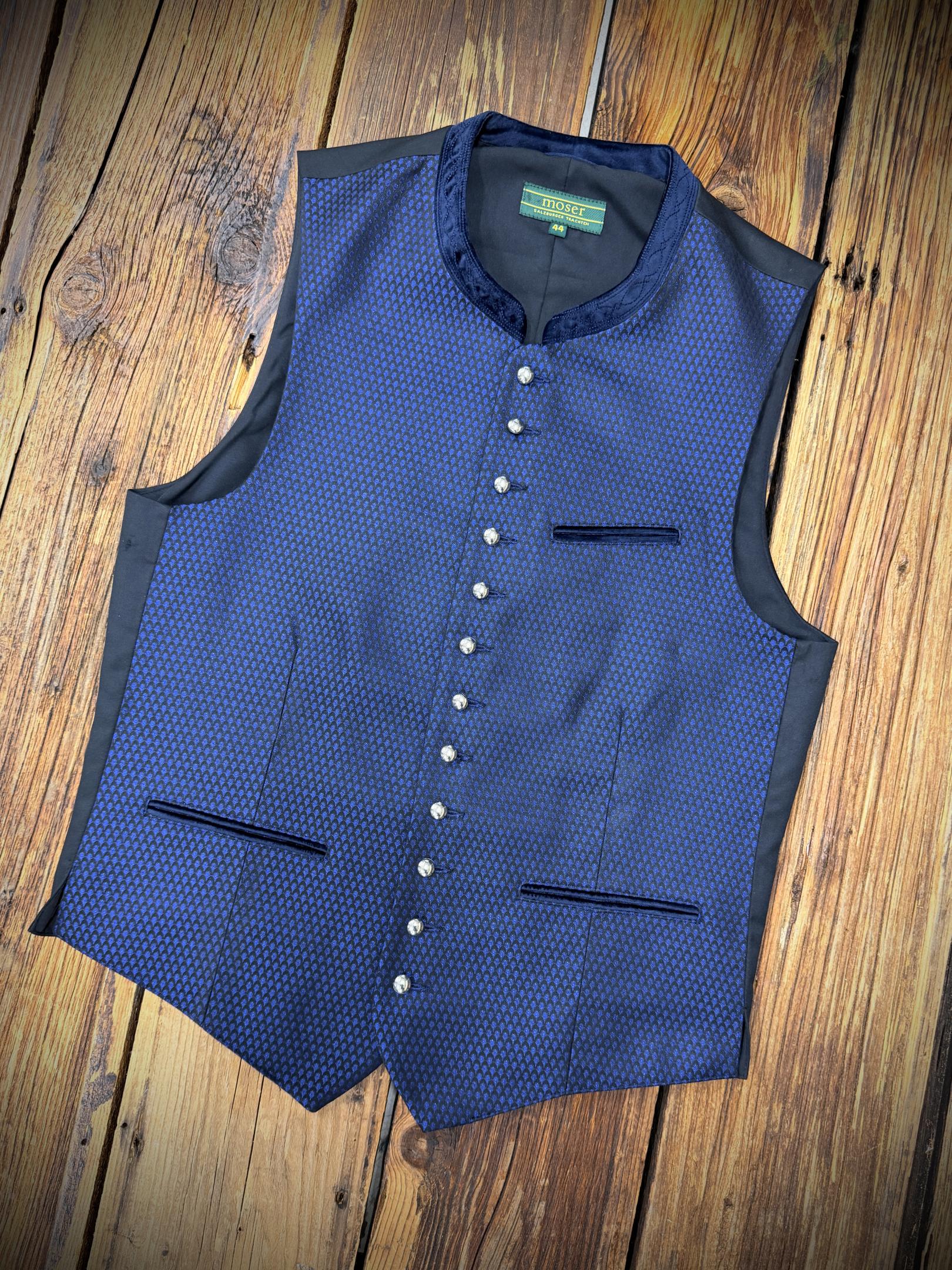 Herrenweste in dunkelblau mit Silberknöpfen.