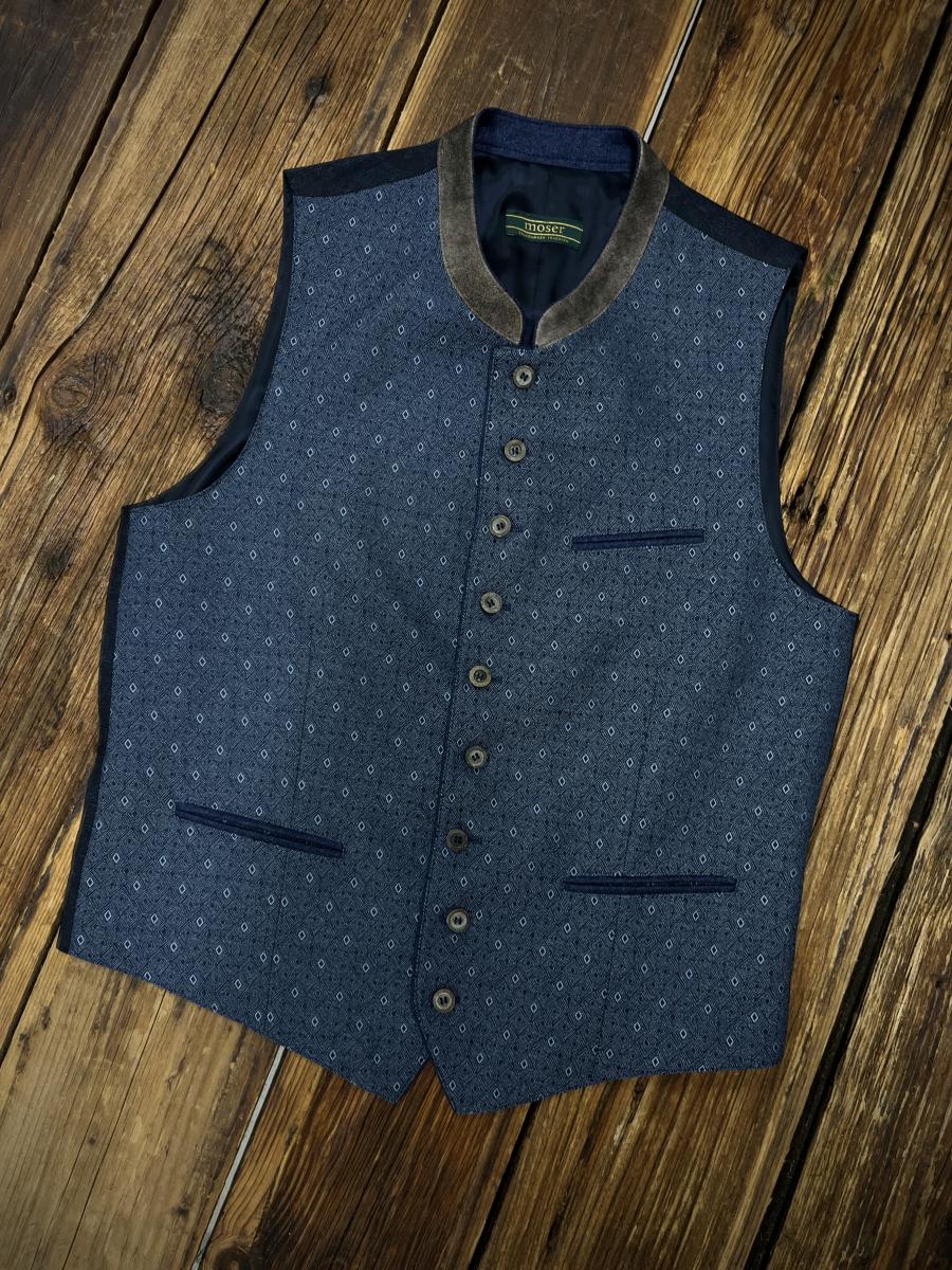 Herrenweste in dunkelblau mit vielen dezenten Highlights