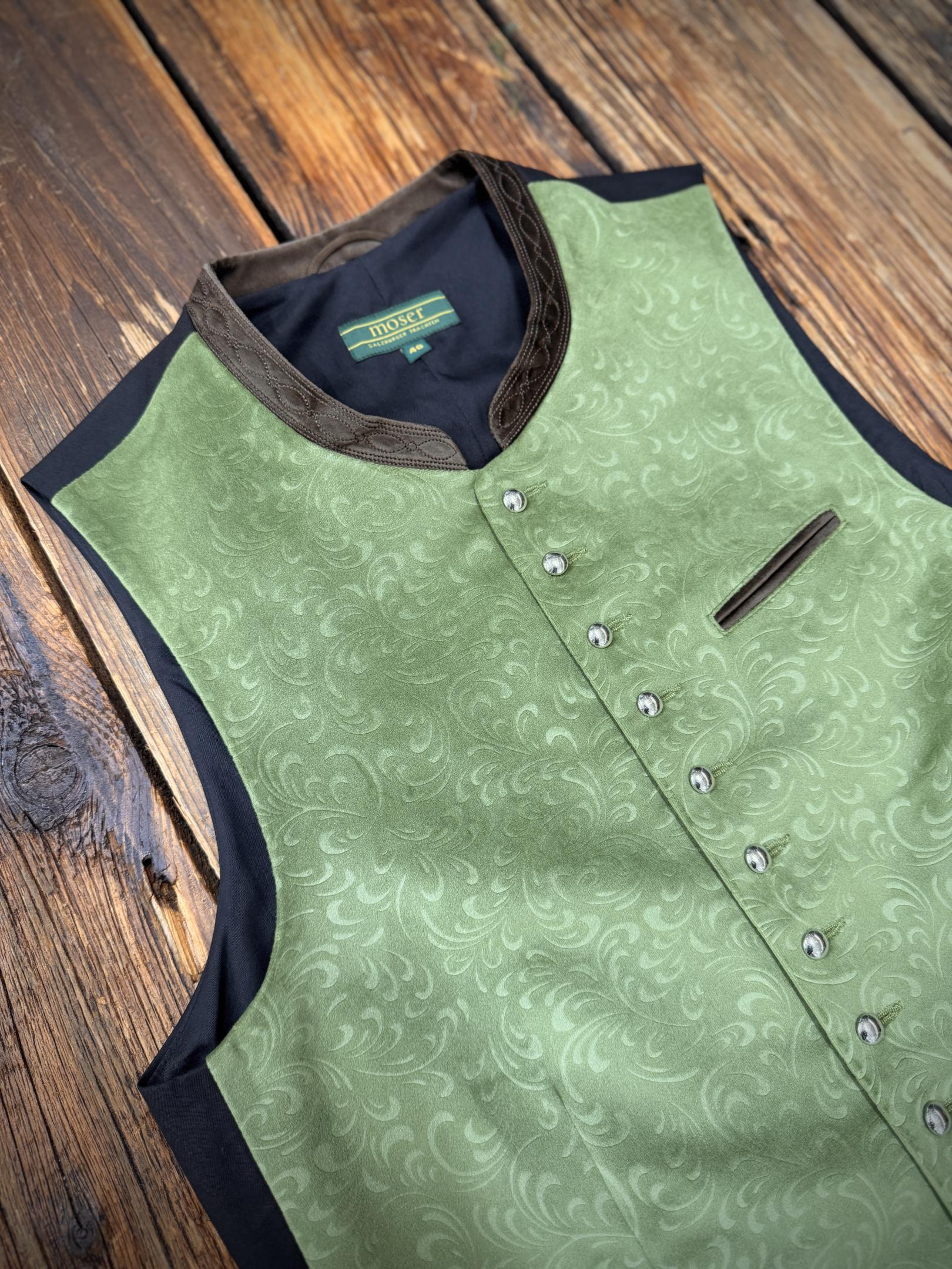 Herrenweste in grün aus Samt mit Silberknöpfen.